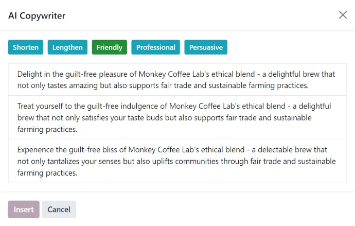 Launch your website in minutes with an AI-based builder. Generate page structure, write product descriptions, and improve your copy with built-in AI tools designed to save time and boost quality.