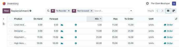 Never run out of stock with smart replenishment tools designed for growing online stores. Odoo supports min-max rules, Make to Order (MTO), dropshipping, and automated procurement flows that help maintain optimal stock levels and ensure the right products are available at the right time.